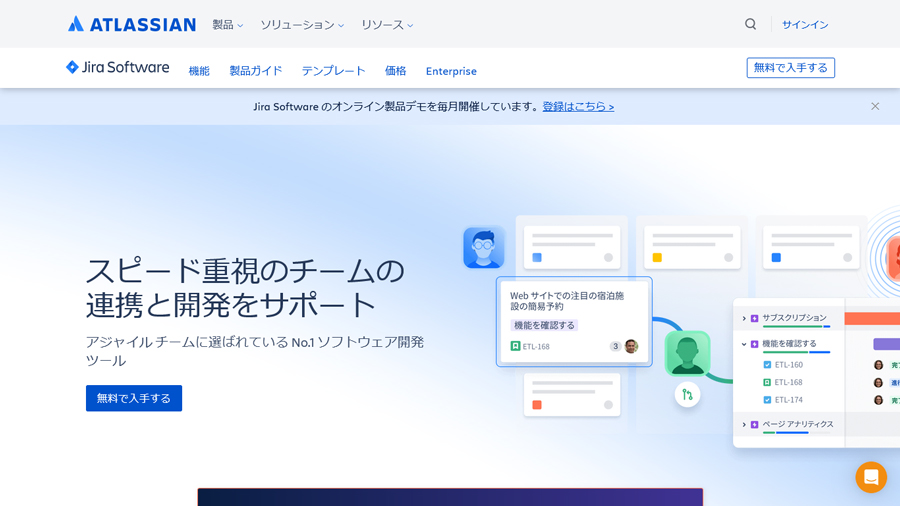 スクラムやカンバンのワークフローに基づいたタスク管理が可能です。 - ・ソフトウェア開発の統合