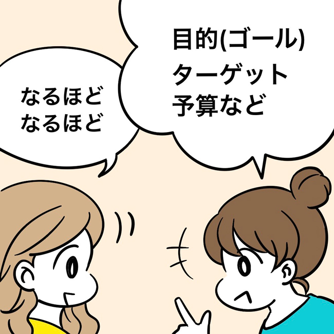 ご依頼の目的(ゴール)・ターゲット・予算について、明確にお話しいただけますと、よりスムーズに進められます!